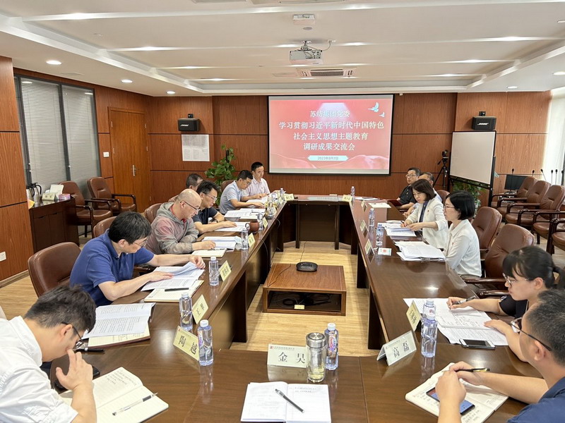 2023年8月7日,苏纺集团召开学习贯彻习近平新时代中国特色社会主义思想主题教育调研成果交流会,深入学习贯彻习近平总书记关于调查研究的重要论述精神,交流调研成果,推进转化运用,把主题教育不断引向深入。苏豪控股集团主题教育领导小组副组长、控股集团党委委员、纪委书记陈万宁出席成果交流会并指导督导,苏纺集团主题教育领导小组组长、党委书记、董事长伍栋主持会议。