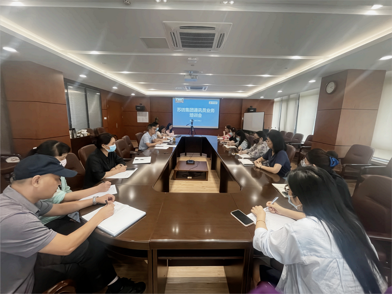为进一步加强集团宣传工作,提高宣传队伍理论素养和业务水平,8月18日,苏纺集团召开通讯员业务培训会。苏纺集团党委委员、副总经理刘超,公司新闻发言人参加会议并授课。
