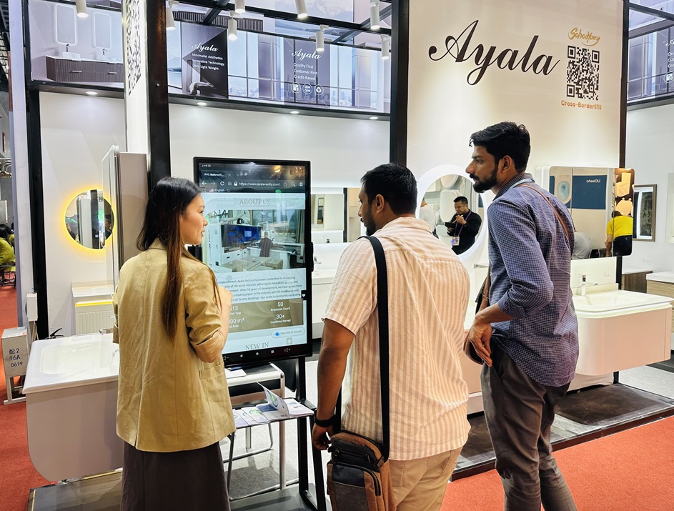 为促进沟通交流,泓瑞公司通过卫浴产品独立站模式,弥补了现场展示的局限性,解决了外贸企业获取订单渠道单一问题,用心获取“微笑曲线”,给客户提供了更多的选择方案。客户可以通过网上产品和现场实物做比较,让产品特性更直观。展前意向邀约加上现场显示屏展示、扫独立站二维码及社交媒体营销推介,再次加深了客户对公司网站及卫浴AYALA品牌的印象,吸引近300个新客户来访洽谈,现场成交4万美元,为后续拓客、延伸打下了良好的基础。