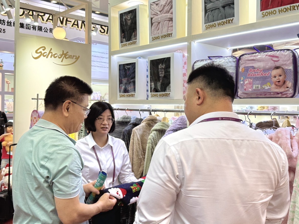 本次广交会轻纺事业部带来100多款展品,其中新品超90%。家居类产品精心推出棉线编制布、棉麻布、色织布面料做成的桌旗、沙发垫、靠垫等,面料兼具厚实耐用、透气防滑、手工编织纹理、可机洗等优点。浴袍、家居服、游戏服则在原有展品的基础上,对材料和款式进行了升级更新,增加长款和分体式设计,游戏服的设计款式新颖、独特,增加了功能性和趣味性。家居鞋与毛绒鞋系列,与靠垫、家居服采用同源材质与设计语言,打造风格统一的家居产品线,为客商带来家居整体化“一站式”采购体验和便利。
