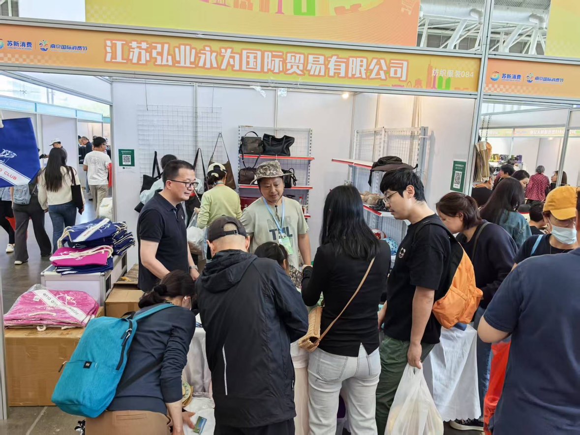 5月10日至11日,由市商务局主办的"2025外贸优品暨南京都市圈专场展销会"在国展中心隆重举行。永为公司领导亲自挂帅,率领业务干将们精心筹备,从展位设计到产品陈列全程把关,精选了达芙妮女包、帽子、购物包、玩具和袜子等畅销产品产品亮相展会。