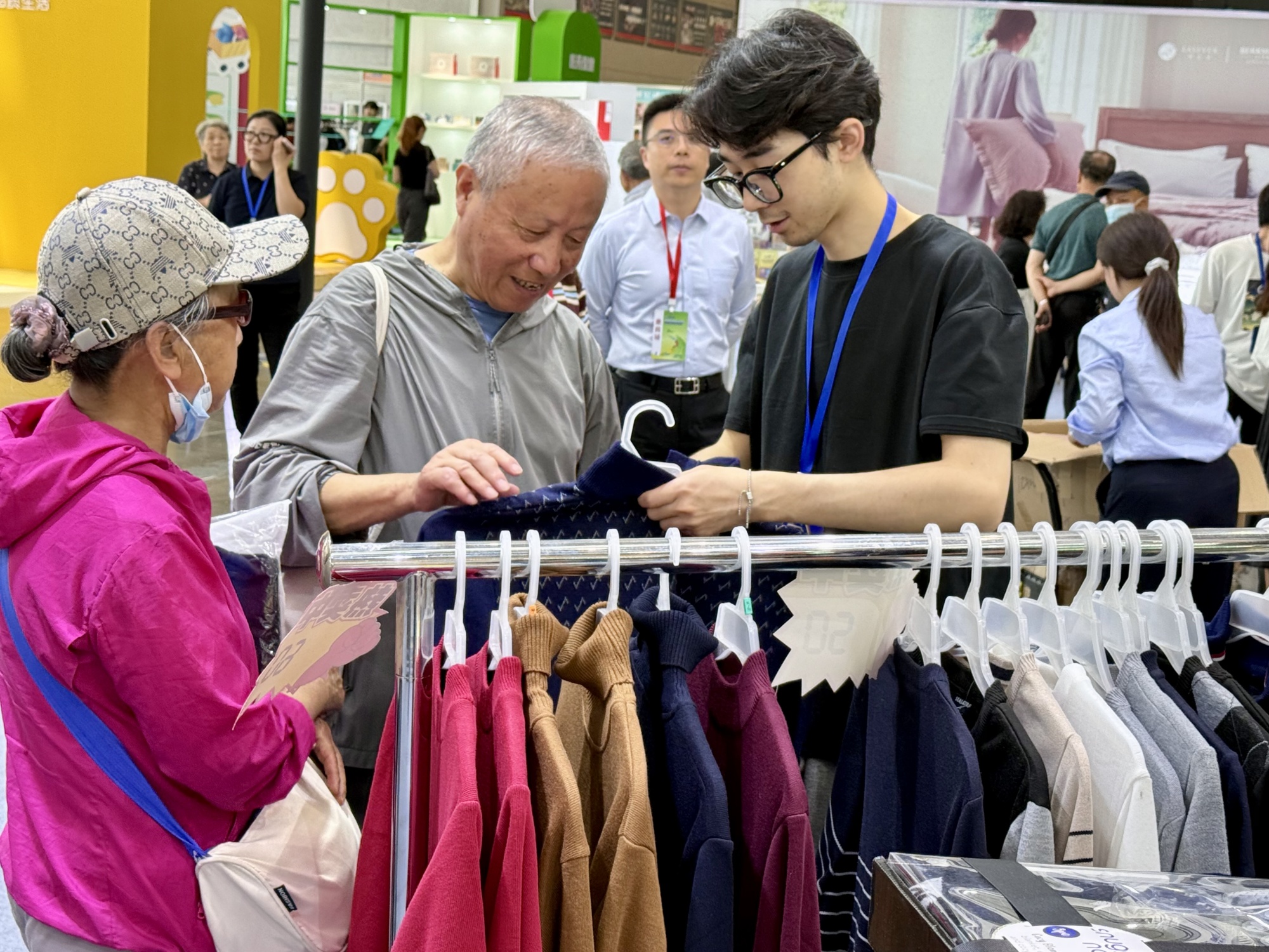 本次参展,除首站携带产品外,应市民需求新增针织服装等产品。凭借优质的供应链基础,苏豪纺织精准将符合国内消费升级需求的优质外贸产品引入国内市场,让消费者同步享受国际品质,助力扩大国内消费需求。展位现场人潮涌动,泓瑞公司陈子建、叶斯哈提·加恒尔等青年员工耐心地向客户介绍产品,吸引了大量市民前来“扫货”。“本次除了为市民朋友带来优惠之外,现场也吸引不少采购商到访洽谈合作,希望通过本次展会让更多出口品质产品走进寻常百姓家”,永为公司戴瑨说道。