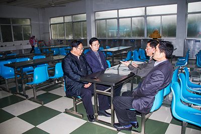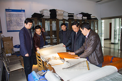 在舒逸公司,王董事长一行深入工厂生产车间、职工食堂了解企业经营状况和一线员工的生活情况,并就地听取了舒逸公司班子成员的经营汇报。王董事长指出,在纺织行业生存环境日益严峻的形势下,舒逸公司要提振信心,稳定发展,走差异化发展之路,在经营品种和产品质量上做出特色,赢得市场。