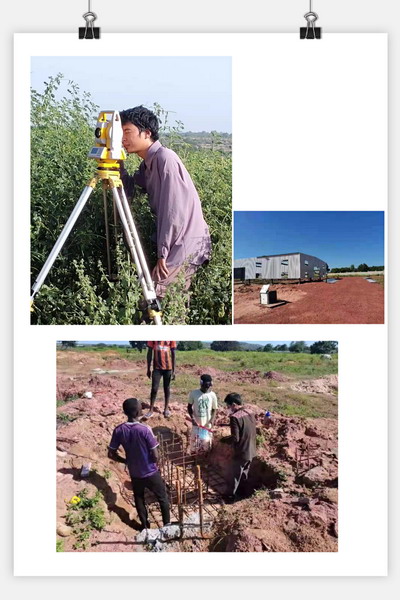 当国庆期间公司的同事纷纷在家放松,走亲访友,游山玩水的时候,深处非洲内陆马里克利科罗的周翊仍旧按工作日时间戴上口罩,穿好长袖衬衫,扛起测量设备,顶着灼热的阳光开始了当天的工作。他与合作厂商派出的技术人员紧密配合,合理安排,在非洲的荒凉大地上先后树立起了几座在阳光下闪闪发光的钢结构厂房,在红色沙地,绿色灌木和黢黑的岩丘反衬下分外醒目。虽然CIM工业园工作仍属于户外,接触人员也较为固定,但是防疫工作时刻都不能放松,他还时时给非洲同事宣讲防疫小知识。闲暇之时,也会讲讲中国的美食,介绍中国的历史,说说风土人情。遥远的东方国度,不一样的社会制度,以人为本的理念,就这样不经意间在当地淳朴的黝黑皮肤内里播下了好奇的种子。