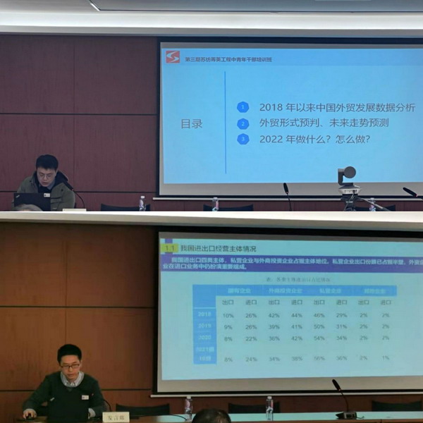 苏纺集团本部贸易一部和泓瑞公司业务精英分享了在“中青班”上的优秀调研报告,对中国的外贸发展进行了分析和预测,将自己的工作经验与大家进行了交流。