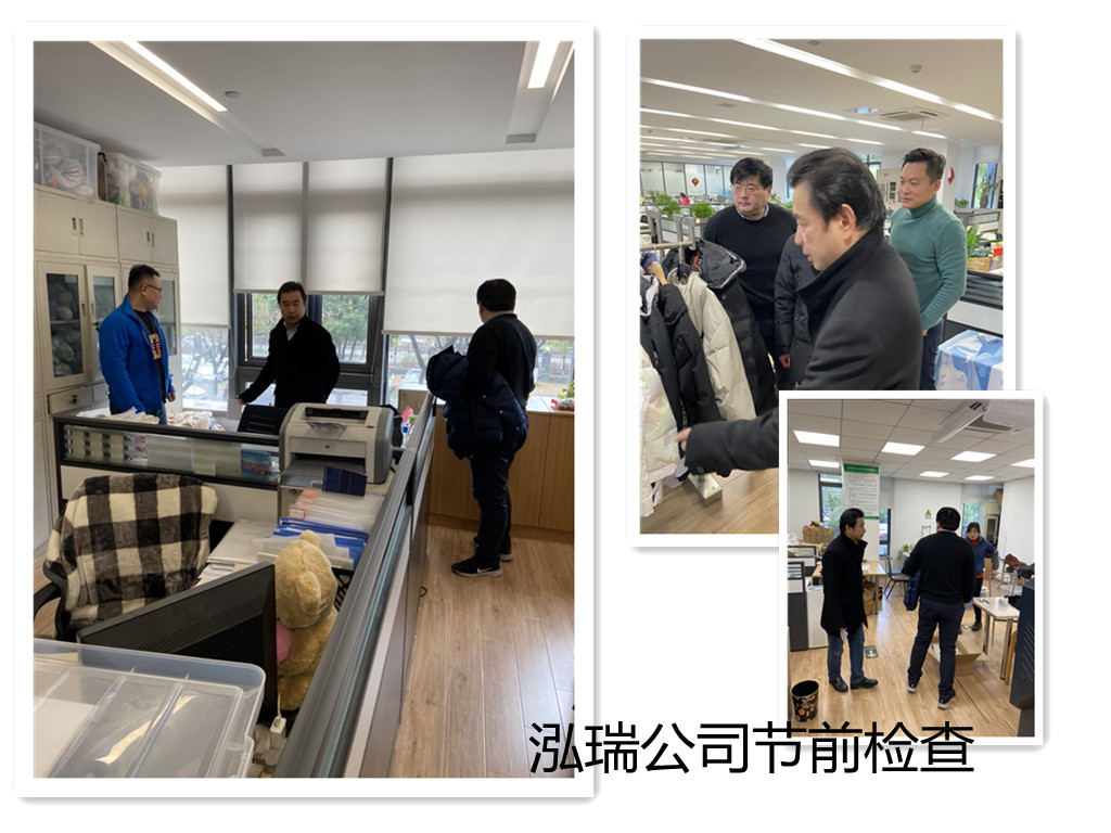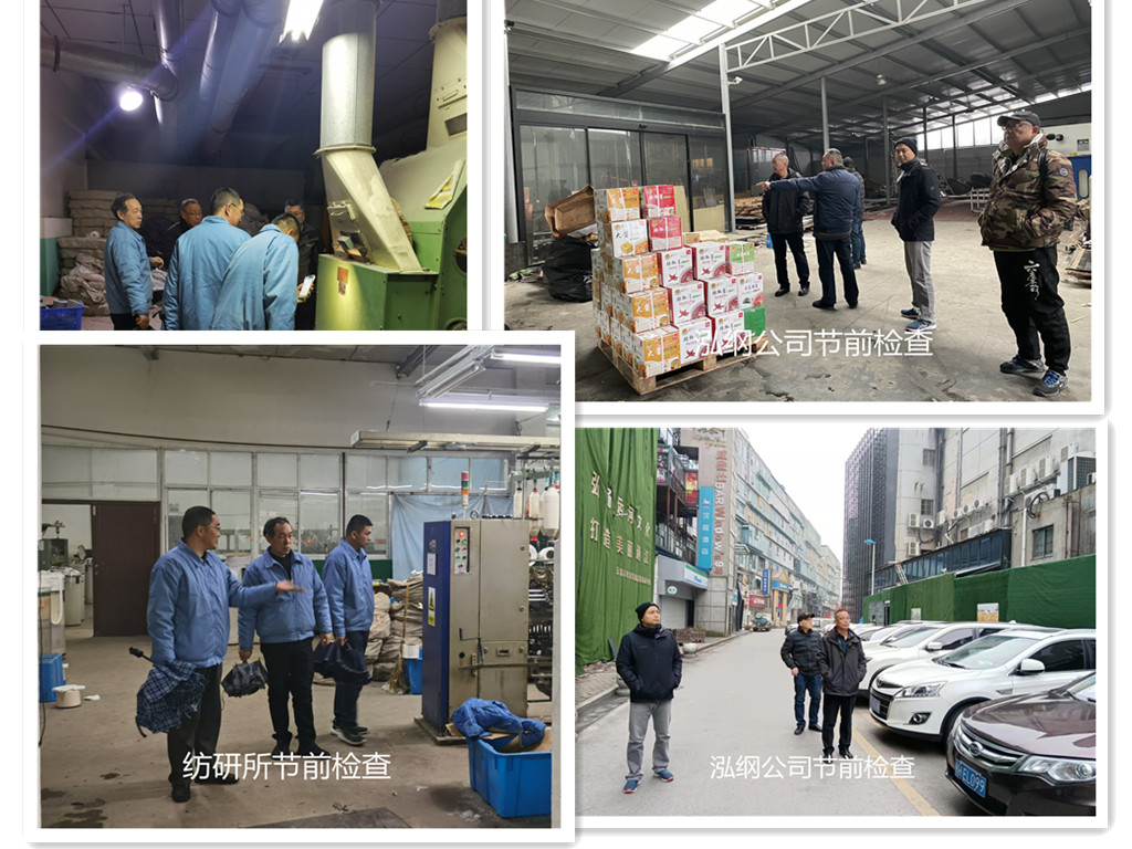 1月27-29日,苏纺集团党委书记、董事长伍栋带队开展春节节前安全生产和疫情防控大检查。对新华大厦、裴家桥重点出租物业,对本部和泓瑞公司开水间、打样间、样品间等重点区域进行检查。详细了解了各承租户节日期间生产经营情况,对所属企业安全生产、防疫物资和恶劣天气应急物资储备、假期前后的人员外出与复工情况做了现场部署,对离岗前的安全和防疫工作作了特别提醒,并向坚守岗位的员工提前致以节日问候和祝福。