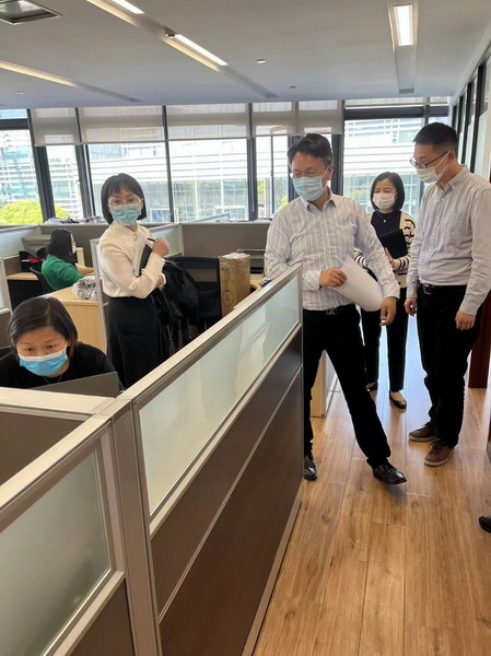 4月8日下午,控股集团副总裁周洪溶一行以“四不两直”的方式赴苏纺集团督查安全生产及疫情防控工作,督查组现场检查了办公区域,随机抽查了子公司及各部门防疫措施执行情况及防疫物资配备,日常测温、消杀、记录等防疫工作落实情况;重点检查了一楼打样中心原辅材料的堆放、用电等安全生产;听取苏纺集团一季度安全生产与疫情防控的情况报告;现场检查了业务部门网上广交会、直播间的准备情况;调研了泓瑞公司一季度的经营情况。