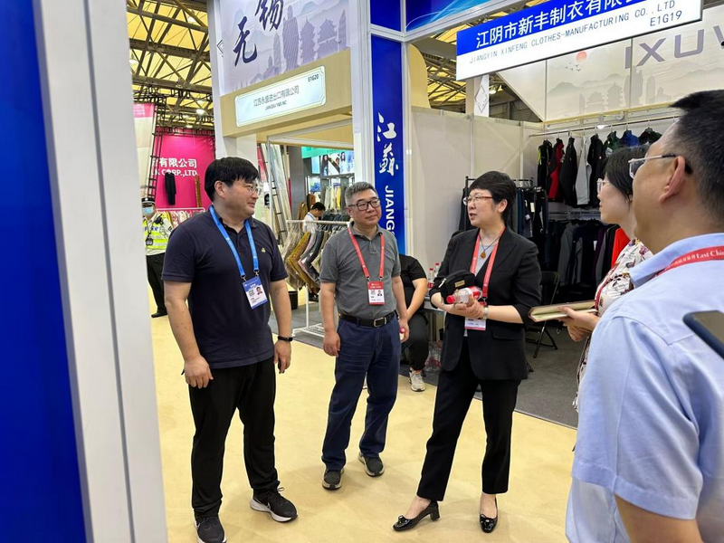 展会期间,江苏省商务厅副厅长周晓阳等领导指导参展工作,鼓励各业务人员,她指出:华交会对促进外贸企业争取海外订单,开拓多元化市场,推动外贸稳规模优结构,实现全年外贸增长目标具有重要意义,大家要抓住机会,体现国有外贸担当。