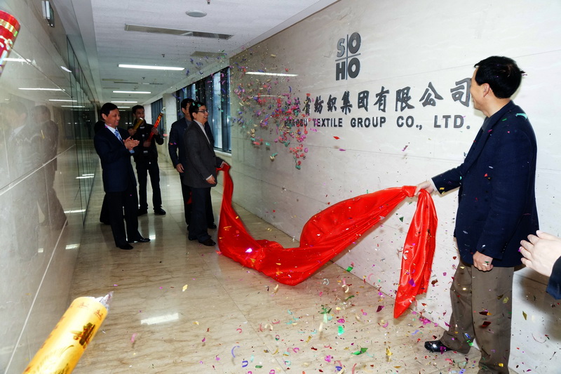 12月17日上午九时,纺织集团在苏豪国际广场5楼举行了简短而又隆重的迁址揭牌仪式。苏豪控股集团副总裁钱一平主持仪式并讲话。集团党委副书记刘显素、副总裁余亦民、总裁助理张宇峰、纺织集团领导班子以及本部全体员工近30人出席了揭牌仪式。