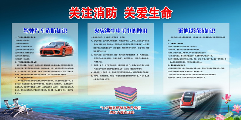 在“119”全国消防日来临之际,泓佳物业在纺织大厦开展了以提高消防安全意识、普及消防法律法规、防火、灭火和疏散逃生常识为重点的一系列消防活动。具体活动如下:一是对大厦内单位进行消防知识的普及教育;二是通过消防宣传板报的形式,结合今年全国“119”消防宣传日主题“认识火灾,学会逃生”,引导广大员工认识火灾危害性,增强防灾减灾意识和自防自救能力,以日常生活相关活动为主题开展消防教育;三是在11月9日当天,组织部分员工、志愿消防员进行灭火器操作训练。通过这些活动增强了群众消防安全意识,为做好冬季防火工作打下了基础。