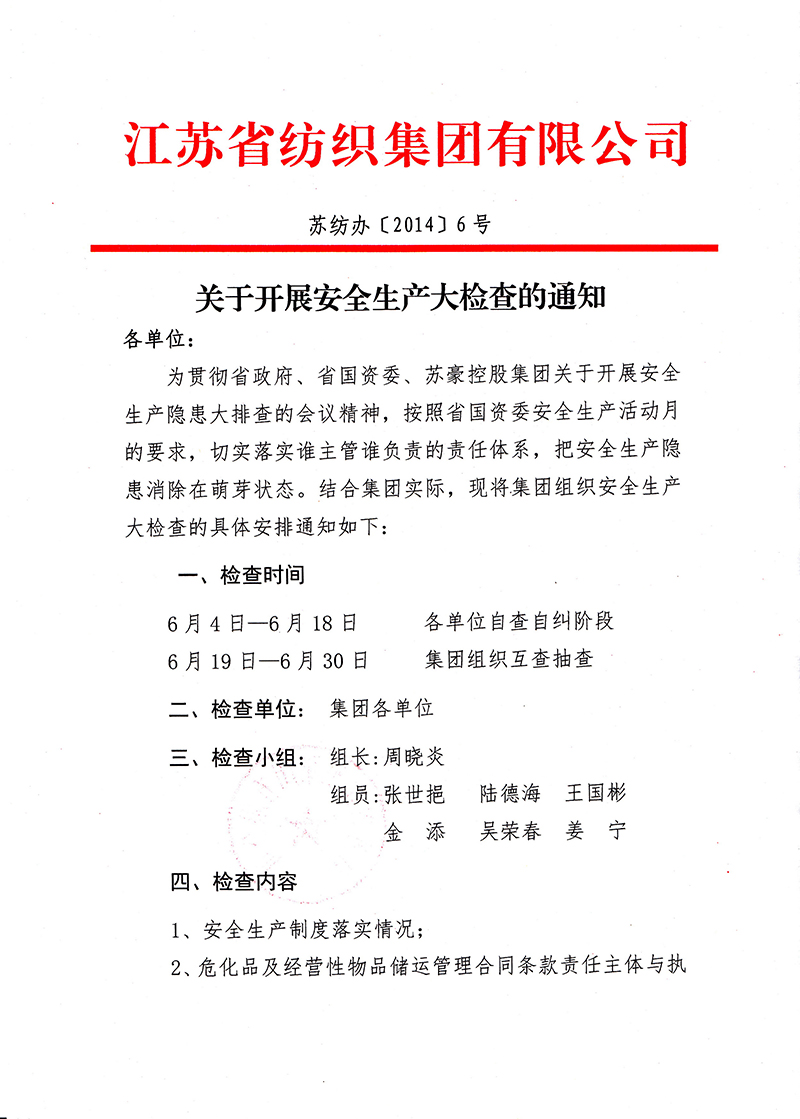 关于开展安全生产大检查的通知