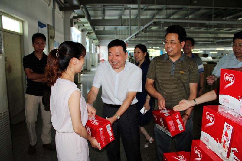夏日炎炎,骄阳似火。7月31日,纺织集团总经理曹金其、纪委书记陈建明代表集团领导班子前往同泰服饰公司金湖生产基地, 给一线职工 “送清凉”、“送安全”、“送法律”,并进行“三严三实”专题调研。