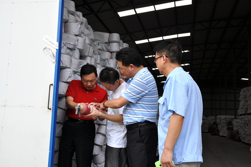 2015年8月21日上午,纺织集团总经理曹金其、纪委书记陈建明书记一行到我公司进行生产安全突击检查。重点对生产车间、成品仓库、食堂、宿舍等消防设施进行了仔细检查,要求针对排查出的安全隐患进行及时整改,对企业进行了安全生产警示教育。 (舒逸公司)