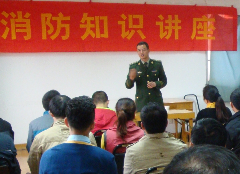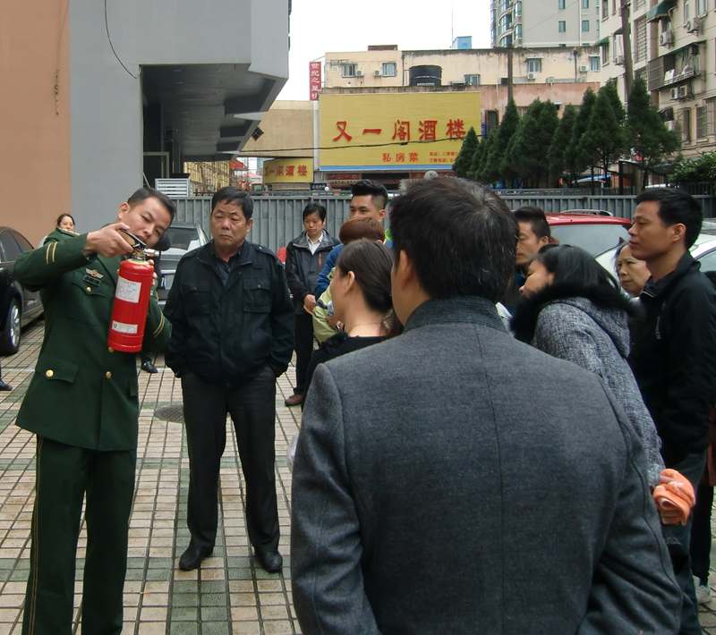 上午9点,消防特勤二中队邓队长为大厦义务消防员、社区业主代表作了一次生动的消防知识讲座。他通过火灾案例,向大家普及防火、灭火知识以及火场逃生技巧,并介绍了灭火器的正确使用方法。讲座结束后,由泓佳公司安全部按照“纺织大厦火灾突发事件应急预案”的程序和要求,组织大家进行了消防演练。