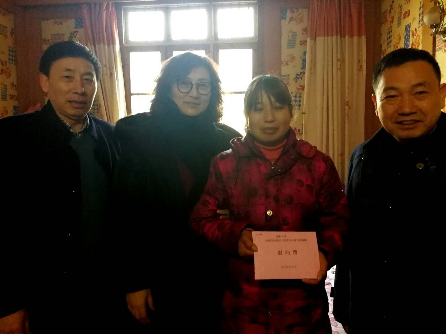2018年2月11日上午,省部属企事业工会负责人景月琴、苏豪控股集团工会副主席张健、纺织集团陈建明书记及工会主席吴荣春等一行,走访慰问了舒逸公司两名困难职工,慰问中,询问了困难职工的身体及家庭生活情况,叮嘱他们好好休息,注意保重身体,并鼓励他们要树立信心,坚强面对困难。同时,祝愿他们度过一个欢乐、祥和的春节,为他们送去了新春的关怀与问候。两名困难职工及家属非常感动,并真诚感谢工会领导和集团领导对他们的关心,表示争取养好身体,早日投身到为集团建设的队伍中来。