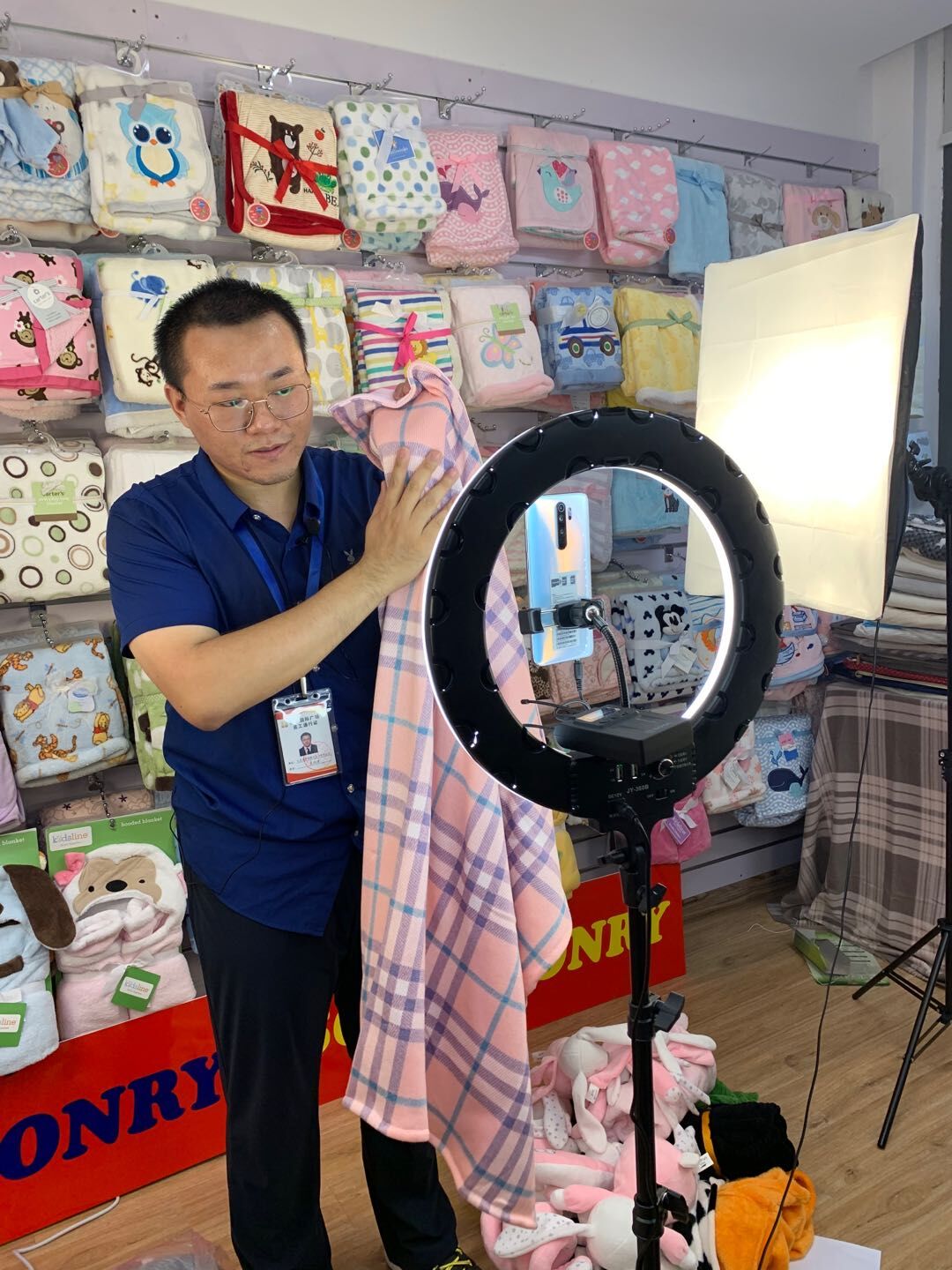 6月15日上午,江苏苏豪泓瑞进出口有限公司各事业部在5个直播间拉开直播首秀帷幕。镜头前的业务骨干们泰然自若,全方位展示产品特点和优势,丝毫不比网红直播逊色。轻纺事业部500多个系列、上千种样品通过抖音平台同步展示直播现场,引来众多关注点赞;服装事业部突出产品差异化,将市场信息与流行趋势相结合的新品,一波波推上直播间;针织事业部携新开发的复合面料针织新品,一天连开四场直播;机电事业部主推环保组合卫浴产品Ayala品牌,首秀不同凡响。