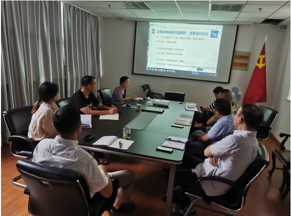 培训内容主要包括两部分:短期出口信用险概况和特险业务交流。今年因新冠疫情影响,全球贸易形势严峻,出口信用保险报损索赔案例也成倍增长,顾璇经理就一些限额申请要点、申报时间节点、报损索赔注意点做了明晰解答,针对短险业务中账期的申请、可损案件出现的质量纠纷等都进行了着重介绍,并且通过案例分析让我们业务人员得到了更加深入的了解。考虑到泓纲公司业务特点,对特险业务、特险融资情况做了简单介绍。