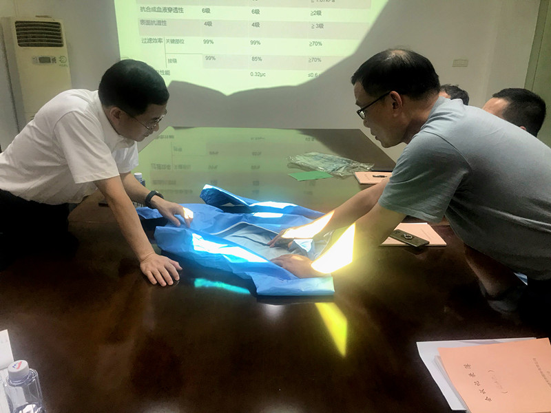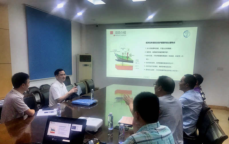 孙海东首先听取了公司领导班子对于纺研所的基本情况介绍以及在研核心项目《耐洗性多层复合防护服面料》的项目情况。孙海东局长对在研项目非常认可,希望纺研所要做好对标工作,认真关注国内外行业竞争者的发展情况,将高新技术融入传统纺织,推进传统纺织行业的发展。孙海东局长表示,无锡市科技局也会“一所一策”做好服务,与纺研所同推进优秀科研项目转化为优秀科技成果,将好的科技成果早日推向国内外市场。