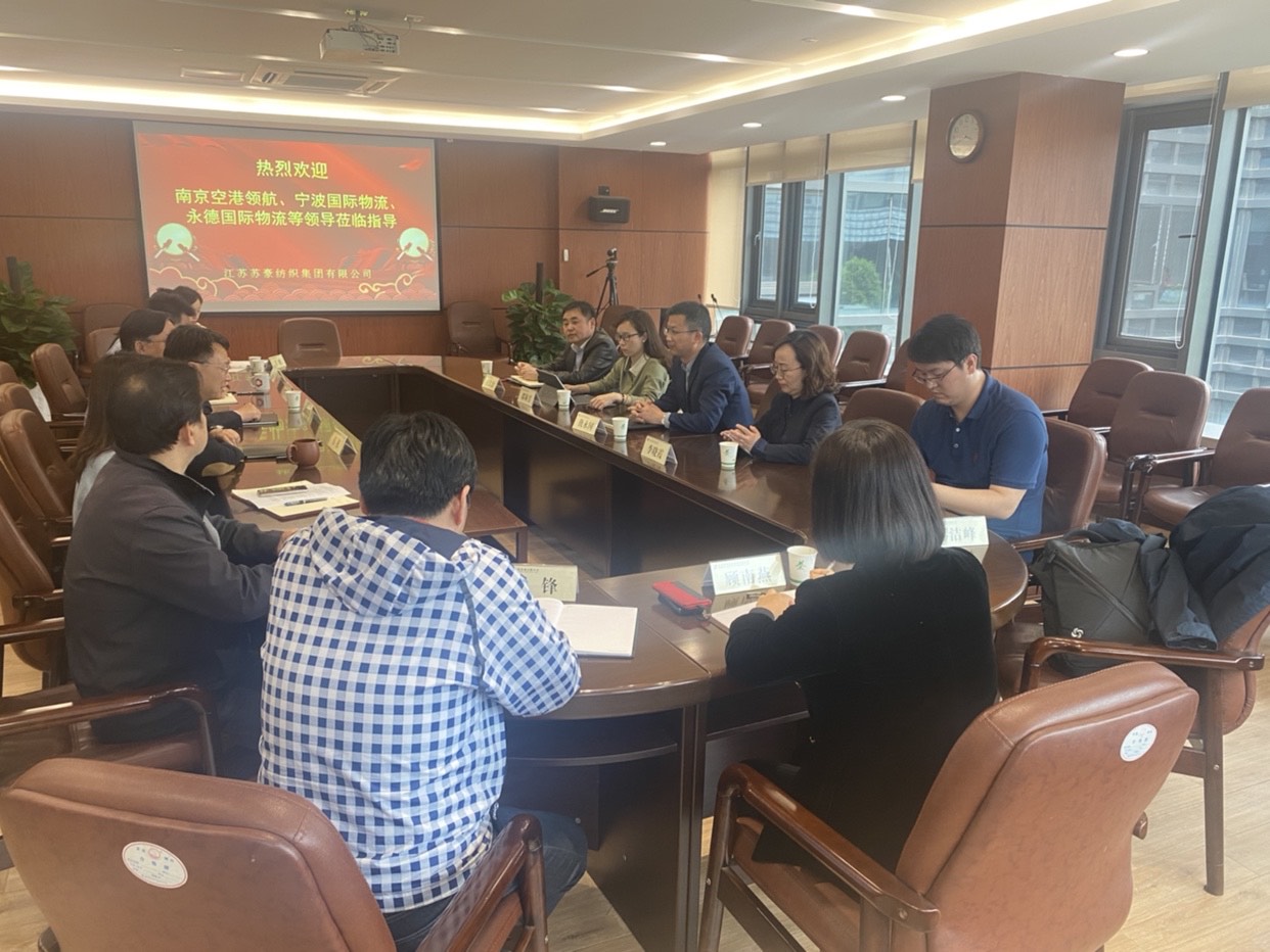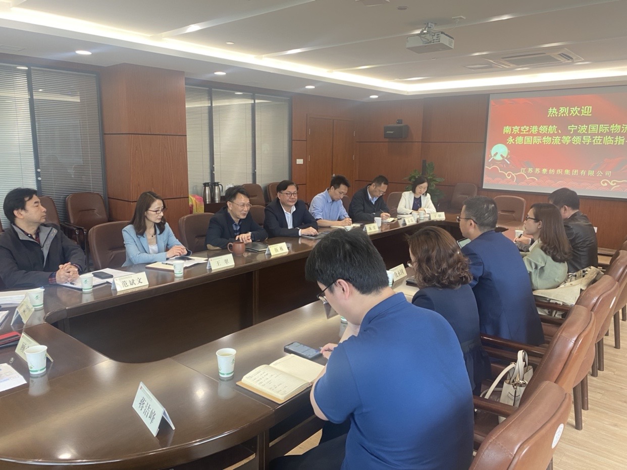4月27日下午,南京空港领航仇永国总经理带领宁波国际物流、永德供应链等公司领导莅临苏纺集团调研交流,苏纺集团董事长伍栋参加交流座谈,研讨开展合作的思路和举措。